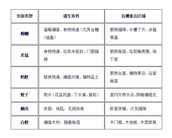行动建议:从厨房和浴室开始检查,优先检查有积水、食物残渣和缝隙的地方,结合季节性特点(如夏季防蚊、雨季防潮)调整自测频率。