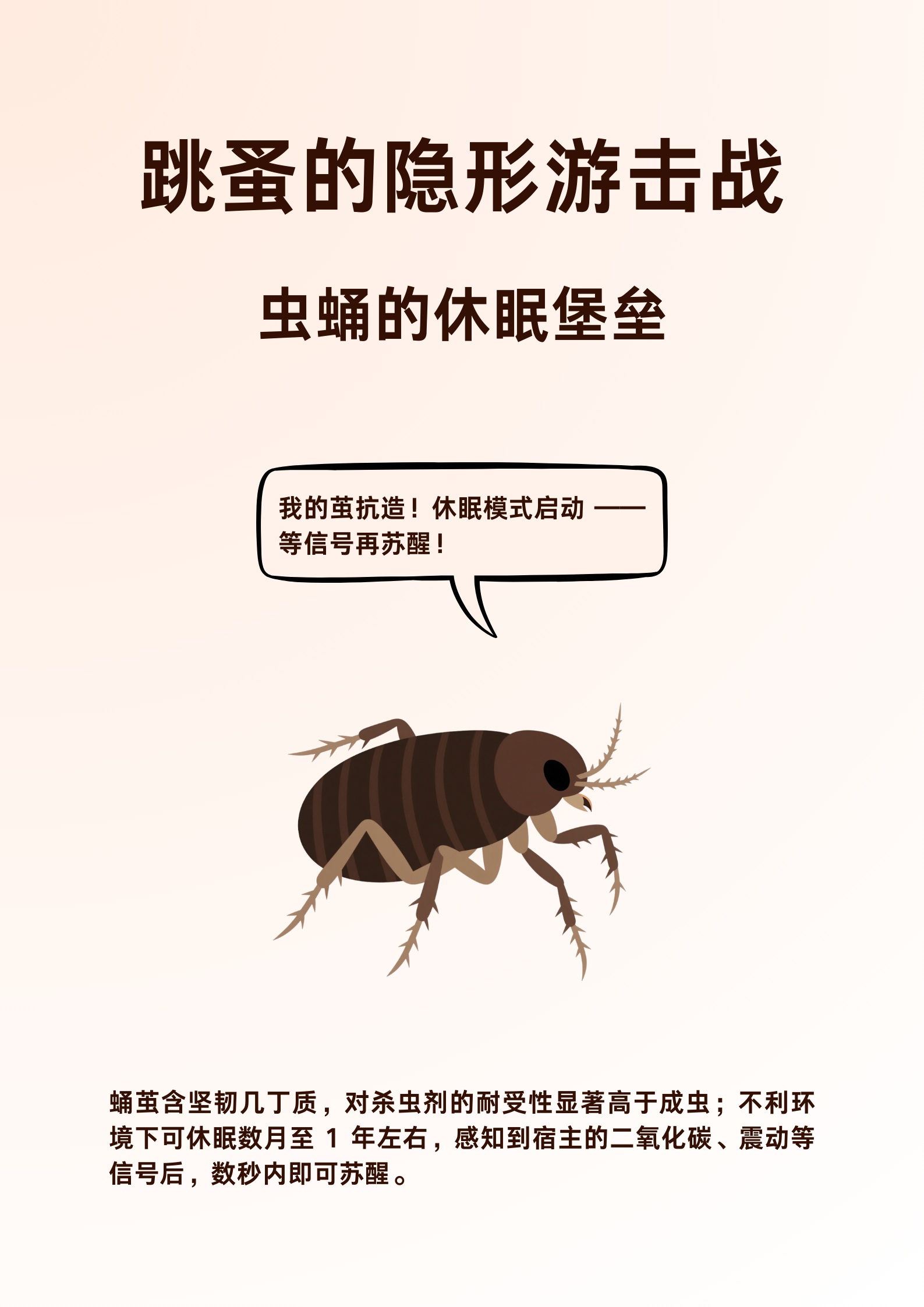 而跳蚤的虫蛹阶段,更是有着强大的生存能力。蛹外面包裹着坚韧的茧壳,其抗药性显著高于成虫。虫蛹可以进入休眠状态,休眠期可长达数年。一旦感知到宿主释放的二氧化碳,它们能迅速苏醒,继续完成生命周期,寻找新的宿主寄生。