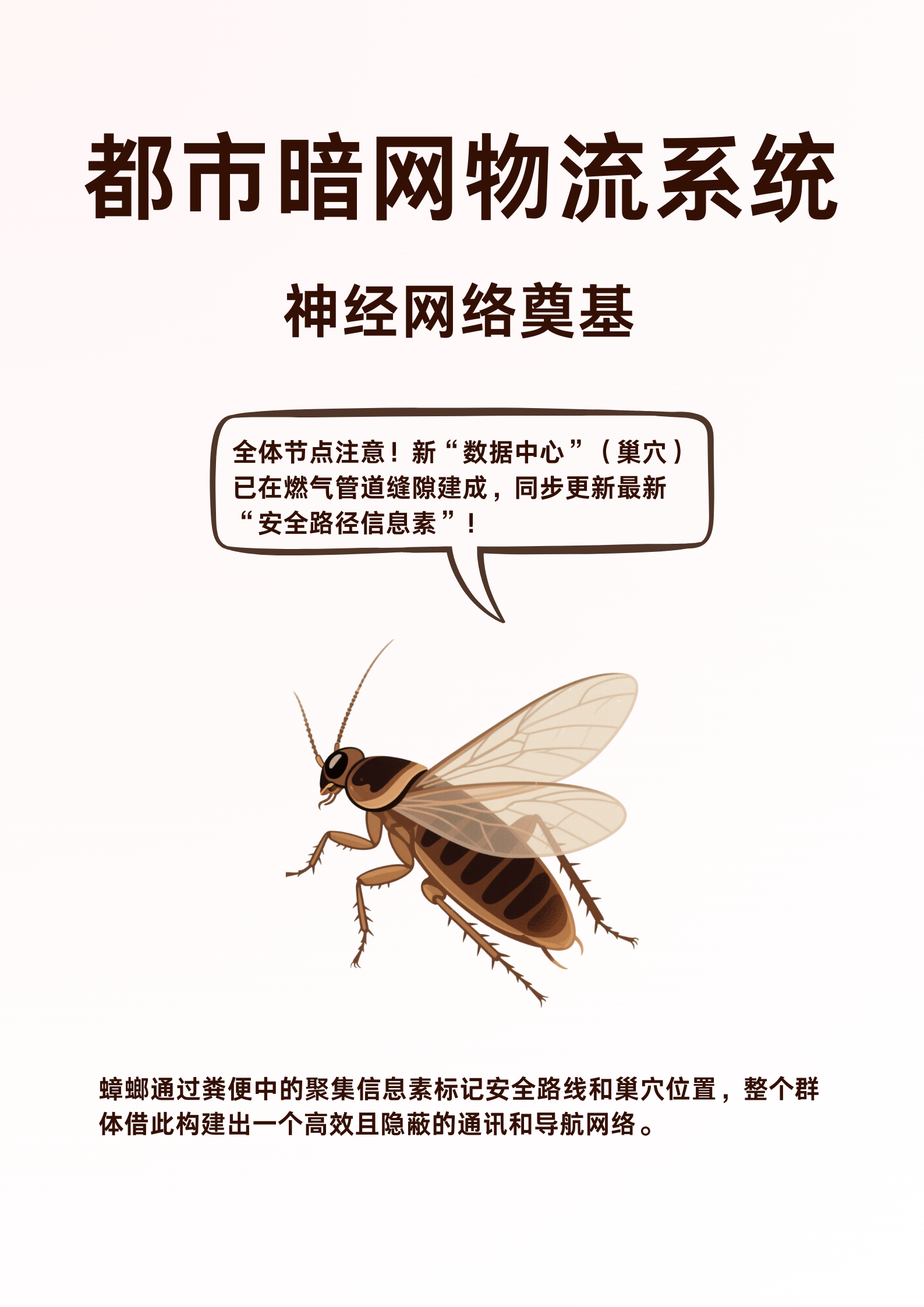 在人类城市楼宇中,厨房与下水道间,悄然运行着亿万年历史的 “致命快递网络”—— 蟑螂的 “都市暗网物流系统”。它靠精密机制让蟑螂立足都市,背后藏着关键科学原理。