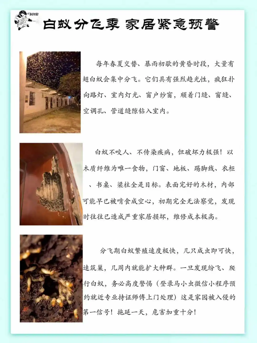 相关标签: 消杀 白蚁 红火蚁 老鼠 蟑螂 蚊子 苍蝇 虫害 马小虫 有害生物 微信小程序